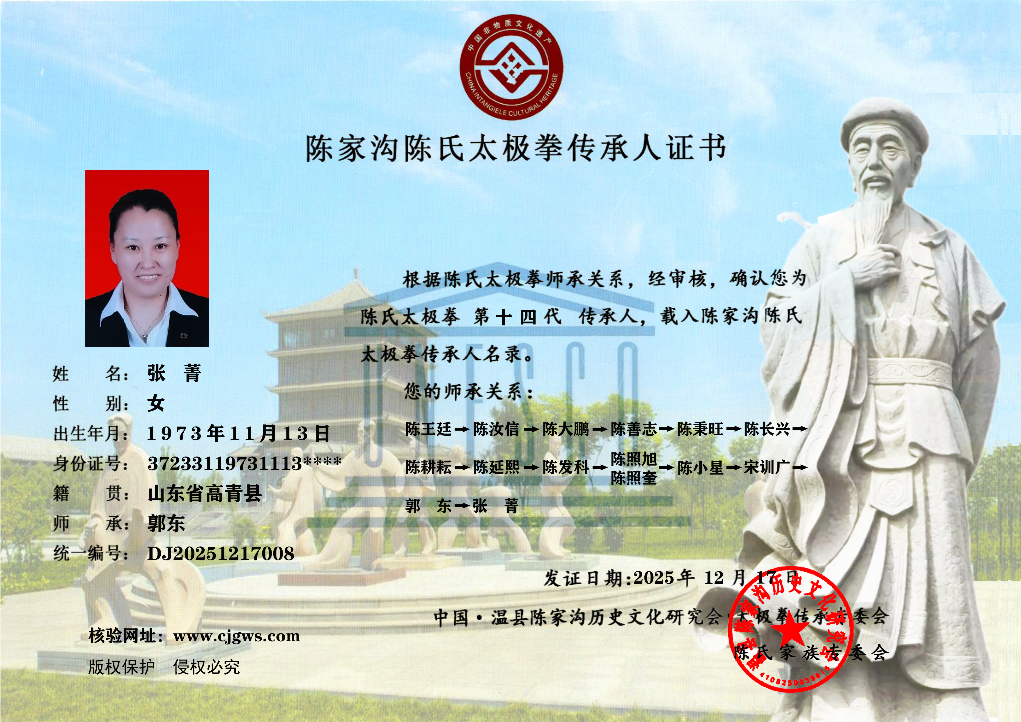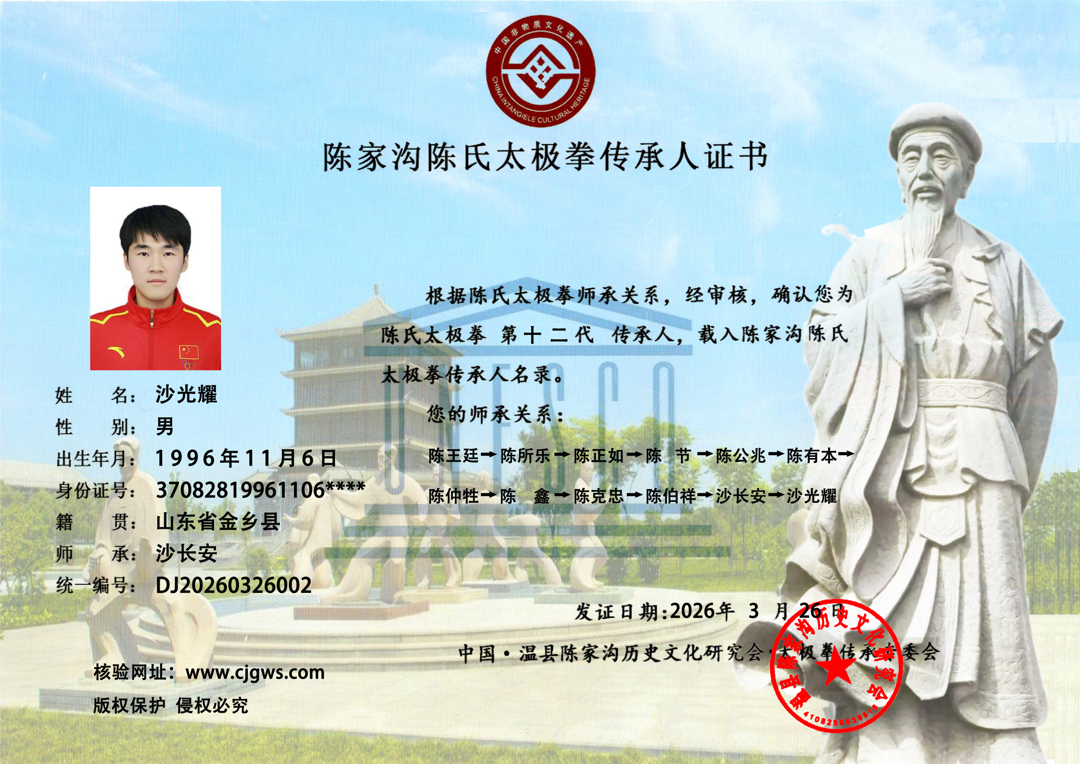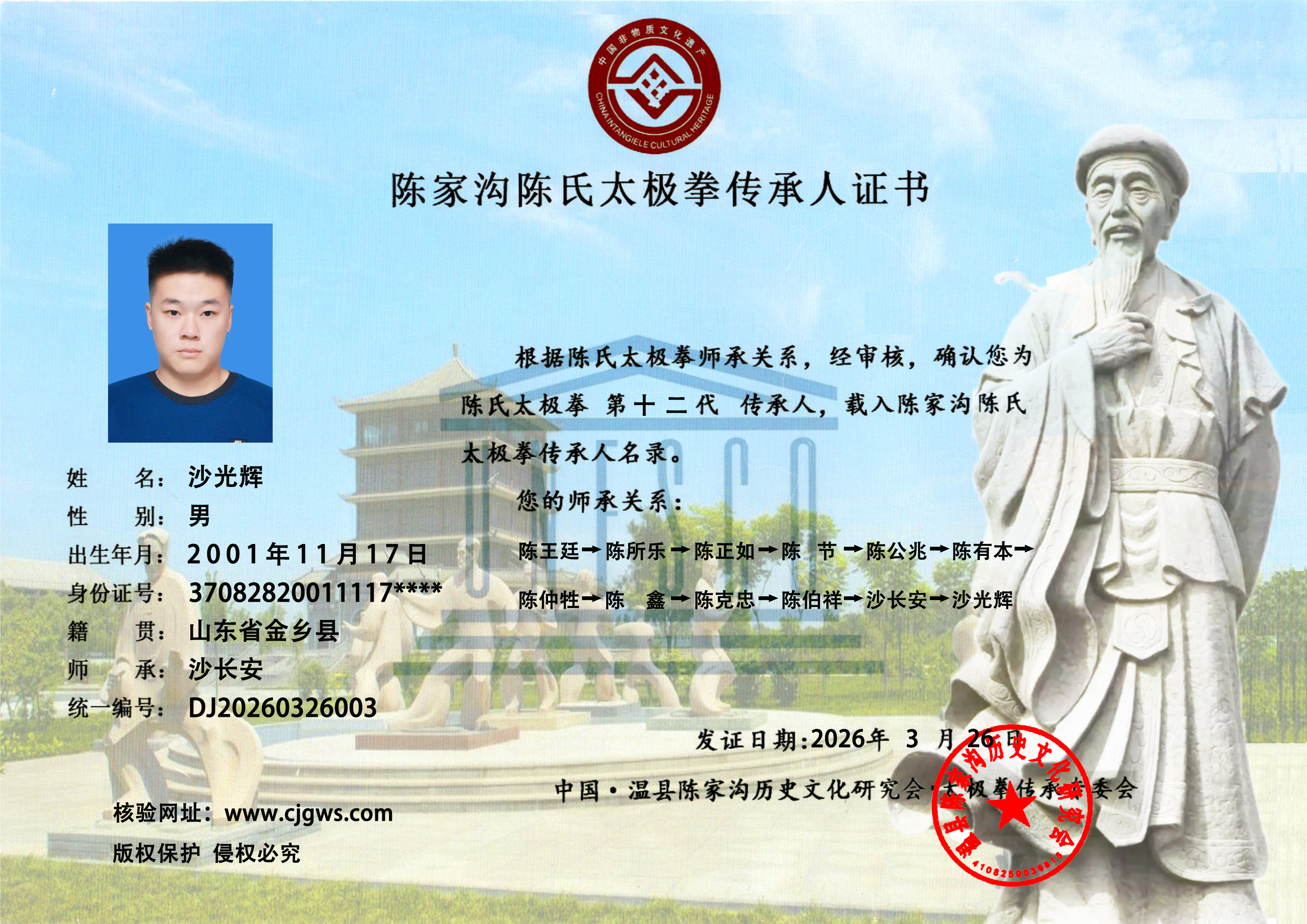 首页 丨资讯 丨旅游研学 丨名家拳师 丨传承谱 丨历史文化 丨经典理论 丨拳馆分会 丨陈氏宗源 丨推荐人物 丨陈家沟走进非遗